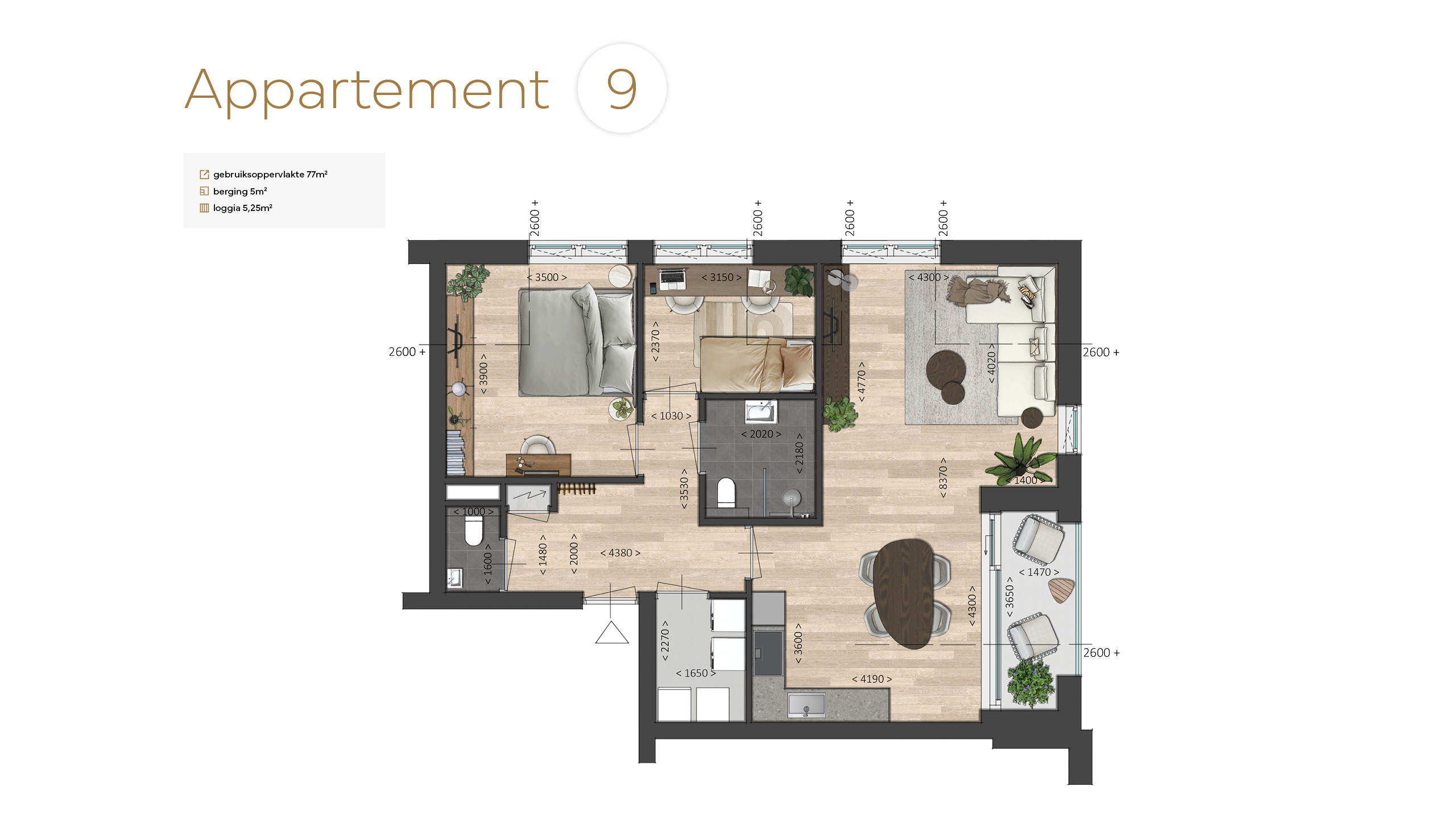 • Comfortabel en modern: vloerverwarming, actieve koeling en volledig afgewerkt sanitair.